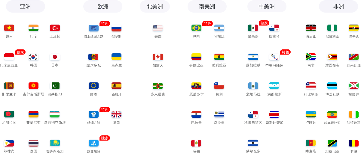 腾道外贸通V5.0数据覆盖了228+国家和地区海关数据,包含完整的各国贸易活动的信息,涵盖进出口商公司名称 、HS编码及描述、产品名称、规格、价格、数量、原产地和目的地国家、日期、起运港、目的港、承运人、提单号等几十个字段。