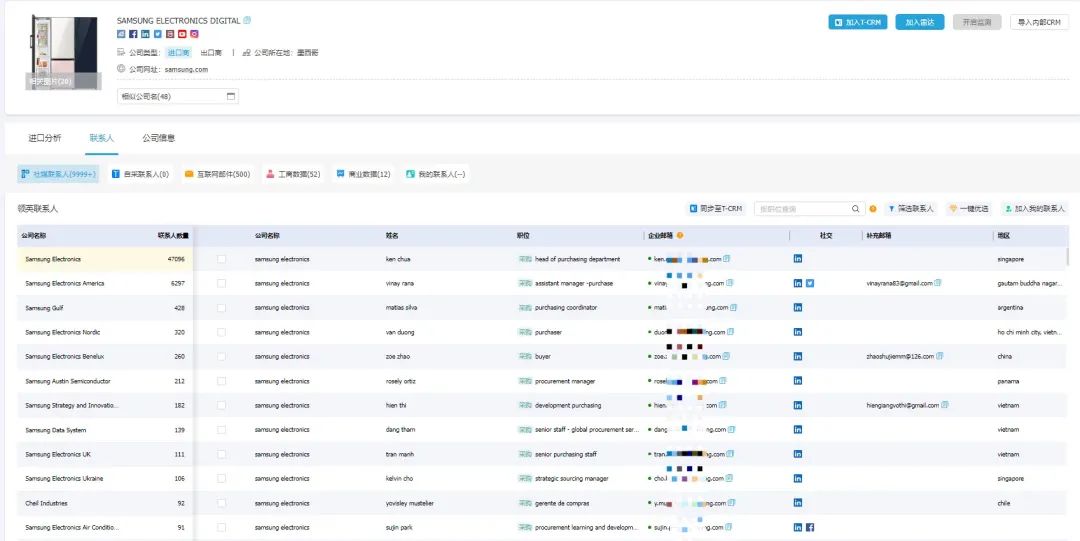 网上大多是info sales的邮箱 ,真正的关键人邮箱一般都很保密的,是不在网上公开的,得有强大的技术手段才能解决.