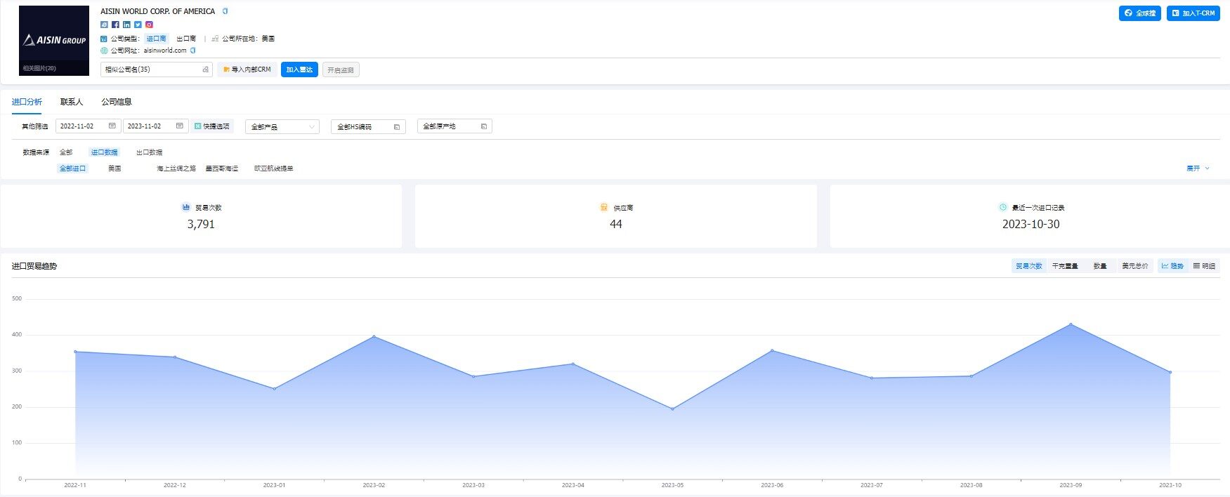 接下来,就可以,去找这些客户的交易记录,查看详细的采购产品,采购频次,还可以查看到具体的采购商的名字、数量、重量、金额。利用深度报表分析,还可以更详细的看到准客户的供应商动态,了解采购商详细需求以及购买率