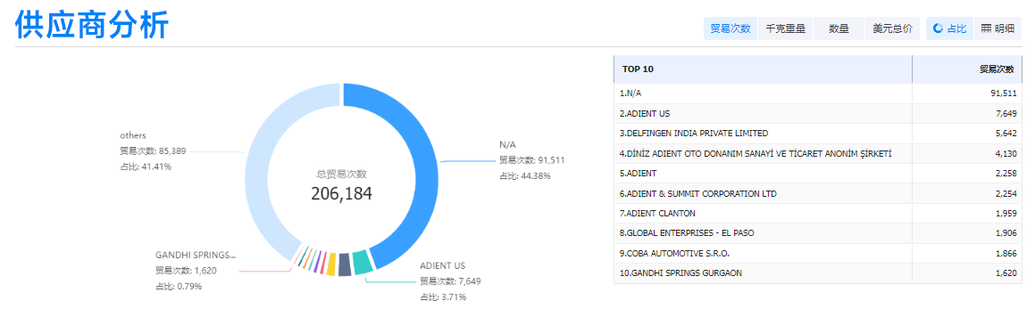 以汽车为例,利用腾道外贸通 SaaS 平台,我们不仅可以轻松获取俄罗斯的进出口商信息,还能深入了解诸如 ADIENT US LLC 这样的进口商的详细情况!通过深度分析,我们可以洞悉这家进口商的进口贸易趋势、HS 编码、供应链、供应商以及原产地等关键信息,为您的商业决策提供有力支持!