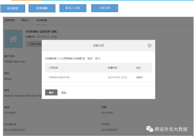 外贸公司担心员工流失,相应的客户信息也就没了。腾道新产品商情雷达采用主子账号监控功能,子账号管理和公司迁移功能可有效保护企业的客户数据,不会因为员工离职而造成客户的流失。