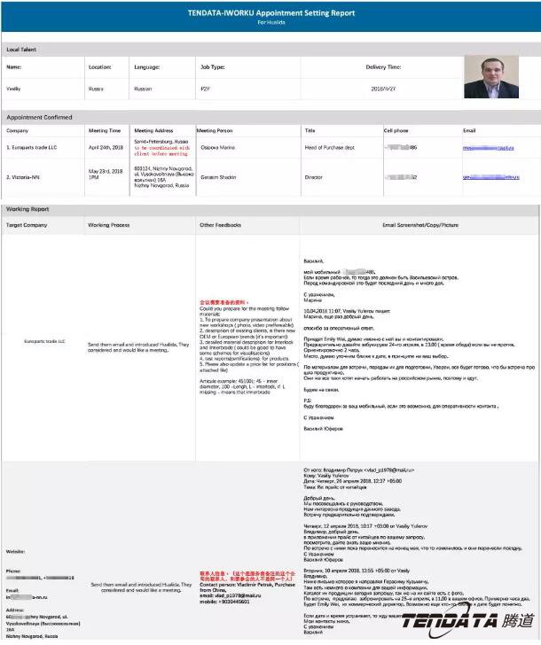 下表为腾道P2P海外本地化邀约(腾道子公司iworku)俄罗斯海外人员为H公司服务的详细报告。